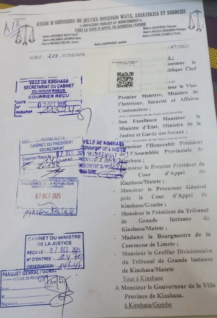 La maison communale de Limete fait l’objet d’une décision judiciaire ordonnant son déguerpissement dans un délai de sept jours. Cette mesure découle du jugement rendu sous le numéro RC 22.929 par le Tribunal de Grande Instance de Kinshasa/Matete, confirmé par l’arrêt RCA 6757 de la Cour d’appel de Kinshasa/Matete.