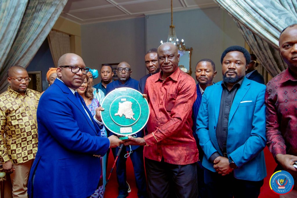 En signe de reconnaissance, les représentants de l’Union sacrée de la Nation lui ont offert une œuvre d’art en malachite représentant la carte de la RDC, symbole d’attachement à l’unité nationale et à la cohésion territoriale.