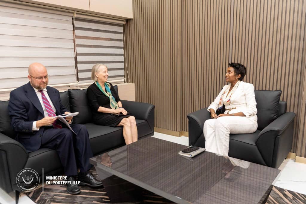 Et dans le cadre de la diplomatie, Julie Mbuyi Shiku, Ministre du Portefeuille, a reçu en audience, l’Ambassadrice des États-Unis d’Amérique en RDC, Lucy Tamlyn en vue d’une coopération internationale. Objectif : poursuivre un dialogue constructif concerté entre la République démocratique du Congo et ses partenaires internationaux autour de perspectives mutuellement bénéfiques avec les entreprises du Portefeuille de l’État congolais.